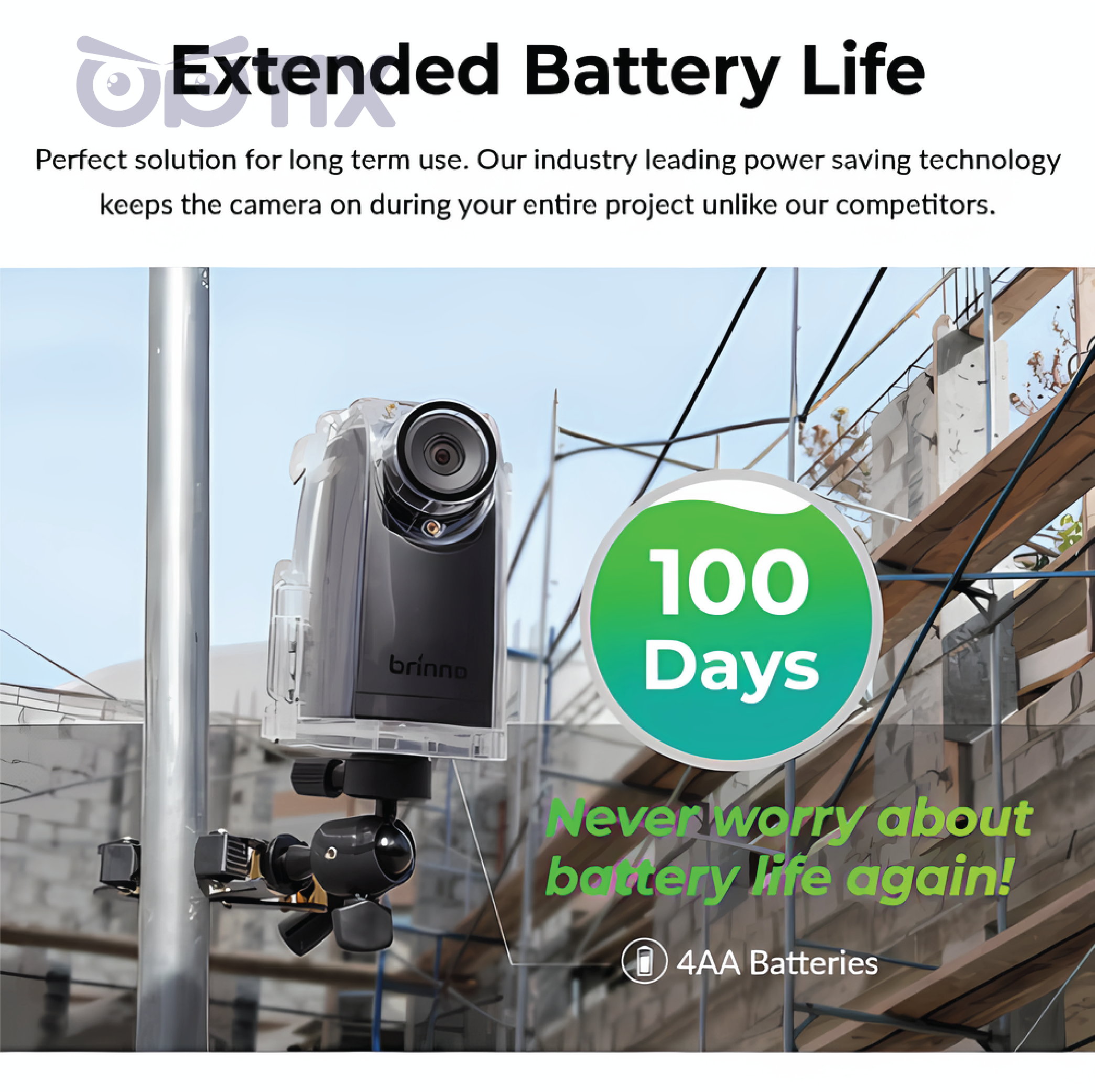 Perfect for long -term projects, Brinno’s revolutionary power saving technology keeps your camera charged for longer than any other battery charged time lapse camera on the market.